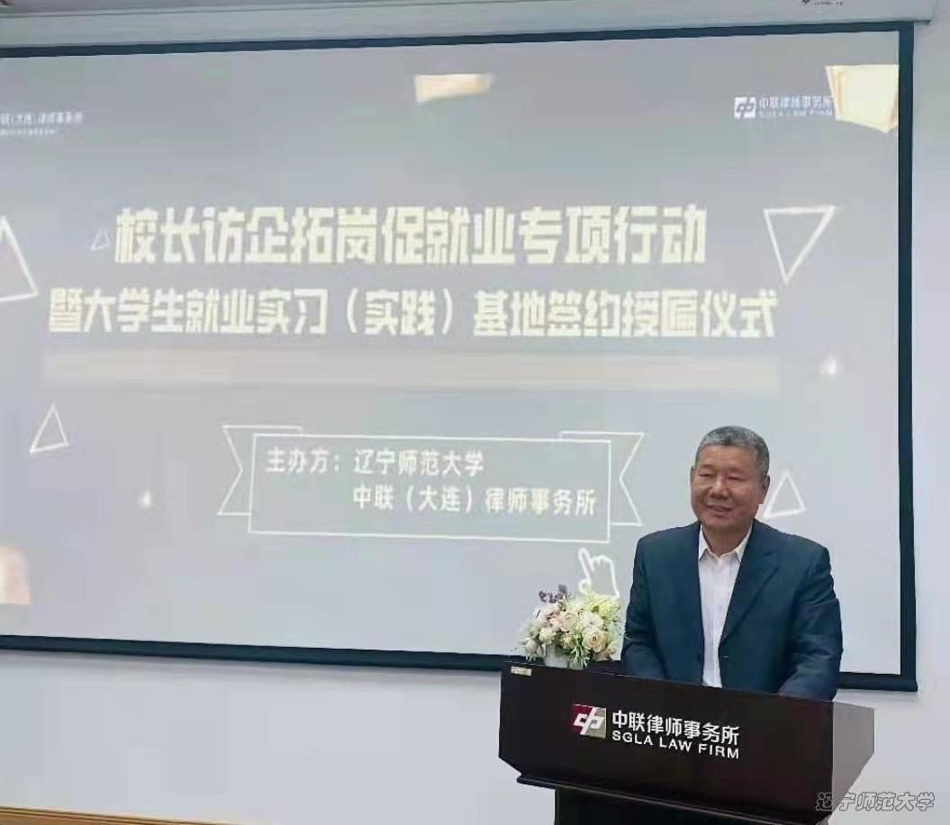 大学生就业实习(实践)基地签约授匾仪式在大连市中山区希望大厦中联(大连)律师事务所举行。副校长刘向军出席本次活动,学校相关部门负责人、法学院班子成员、教师代表和大连市律师协会、中联(大连)律师事务所、辽宁申智律师事务所、辽宁澄宇律师事务所等单位的负责人及律师代表参加活动。