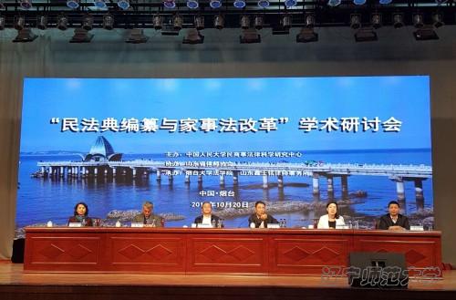 2018年10月20日,由中国人民大学民商事法律科学研究中心主办,山东省律师协会协办,烟台大学法学院和山东鑫士铭律师事务所共同承办的“民法典编纂与家事法改革”学术研讨会在烟台大学法学院弘毅厅与东山宾馆会议室举行。最高人民法院咨询委员会副主任、中国法官协会副会长、最高人民法院民法典编纂工作研究小组副组长杜万华,中国法学会民法学研究会副会长、民法典编纂项目领导小组成员、继承编课题组牵头人郭明瑞教授,中国人民大学民商事法律科学研究中心执行主任、最高人民法院原民一庭副庭长姚辉教授,中国法学会婚姻家庭法学研究会副会长、黑龙江大学教授王歌雅教授,以及来自高校的学者和实务界的法官、律师等40余名嘉宾出席了本次研讨会。炸金花在线丁慧院长、刘耀东副教授应邀参加此次学术研讨会。