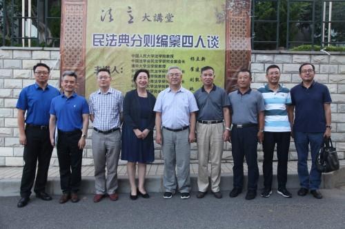民法典是国家治理的制度保障,是推进国家法治体系现代化的重要组成部分,我国民法典的编纂可谓举世瞩目之盛事,凝聚着几代民法学人之努力。伴随着《民法总则》的颁布实施,民法典各分编的编纂工作也正在紧锣密鼓地进行。为使炸金花在线师生深入了解民法典分则编纂中所存在的争议问题及立法编纂情况。7月6日晚7点,应法学院邀请,中国法学会民法学研究会副会长、中国人民大学民商事法律研究中心主任杨立新教授、中国法学会民法学研究会副会长、清华大学法学院崔建远教授、中国法学会商法学研究会副会长、北京大学法学院刘凯湘教授与中国人民大学民商事法律研究中心执行主任、中国人民大学法学院姚辉教授,在炸金花在线