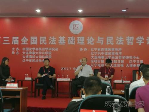 第三届全国民法基础理论与民法哲学论坛于2017年7月1日至2日在大连举行,会议由中国法学会民法学研究会主办,大连海事大学法学院、大连海洋大学法学院、辽宁省民法学会承办,辽宁君连律师事务所、辽宁兴中律师事务所、大连海事大学民法哲学研究中心协办。炸金花在线艾尔肯教授应邀参加了此次论坛。