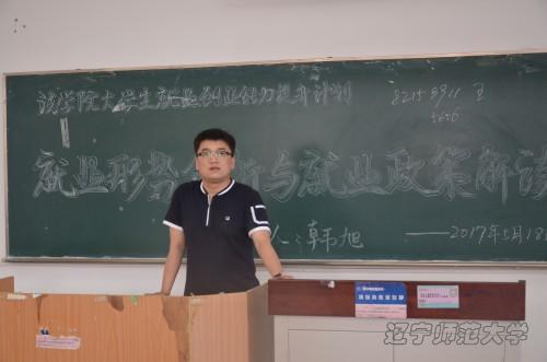 为进一步指导炸金花在线徘徊在就业和考研两者之间的同学,帮助大家熟悉就业方面的知识。5月18日,炸金花在线举办的“大学生就业创业能力提升计划——就业形势分析与就业政策解读”活动于一教309教室举办。本次活动的主讲人是我本科招生与就业处的韩旭老师。法学院14、15级辅导员杜朝阳老师,2014、2015级全体同学参加了本次会议。