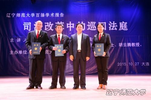 刘向军副校长在讲话中强调,主审法官到法学院校兼任教职,是最高人民法院加强与法学研究教育单位合作,推动司法实践与法学研究教育互相促进的一项重要措施。办好高等教育关键还是要建设一支高素质的教师队伍。法律专业人才的培养尤其需要理论和实践的结合,聘请在座的3位实务审判专家为我校法学院兼职教授,是学校顺应教育改革的潮流,谋求全面、协调、科学发展所迈出的坚实一步,也是学校贯彻落实“四个全面”战略布局,积极推进全面依法治国方略,大力实施人才强校战略的一项重要举措。