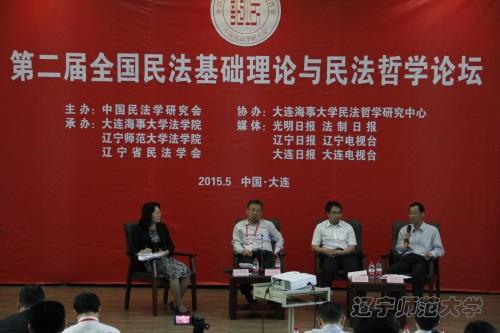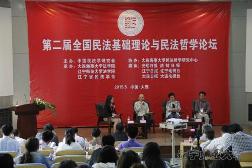 在我校举行的第二场主题论坛,由法学院院长丁慧教授主持。来自北京大学、中国人民大学、华东政法大学、西南政法大学、吉林大学、中国社科院法学所、厦门大学、大连海事大学、辽宁大学等全国著名高校和科研单位的专家学者四十余人作为嘉宾出席了本届论坛。本届论坛得到了光明日报、法制日报、辽宁日报、辽宁电视台、大连日报和大连电视台等多家新闻媒体的支持。