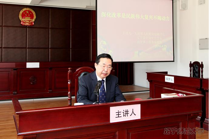 为了进一步做好党的群众路线教育实践活动第二阶段工作,深入学习党的十八大、党的十八届三中全会精神,4月25日下午,法学院党总支邀请大连市人民政府副秘书长,辽宁省中青年法学家,辽宁省资深法学家,法学博士都本有先生做了题为《深化改革是民族伟大复兴不竭动力》的专题报告。