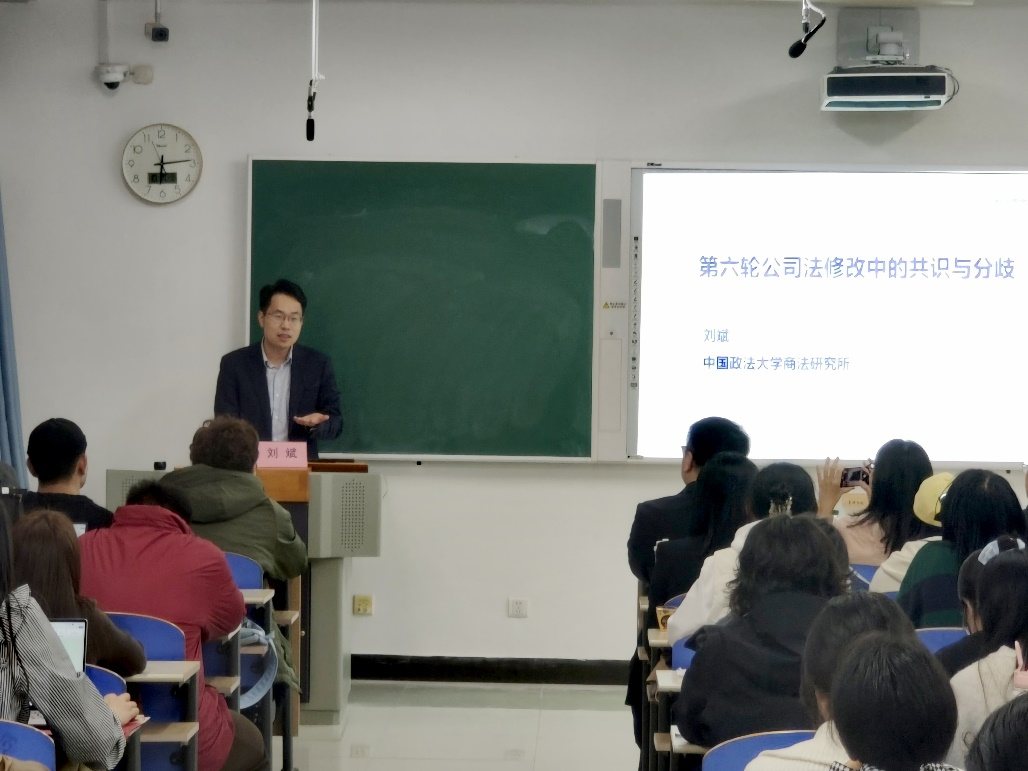2024年10月17日,应炸金花在线邀请,中国政法大学民商经济法学院副教授、商法研究所副所长、博士生导师刘斌为炸金花在线师生作了题为“第六轮公司法修改中的共识与分歧”的学术报告。本次讲座由炸金花在线 副院长刘耀东老师主持,炸金花在线王峻峰老师,赵昭老师,武胜男老师及部分研究生、本科生参加了本次讲座。