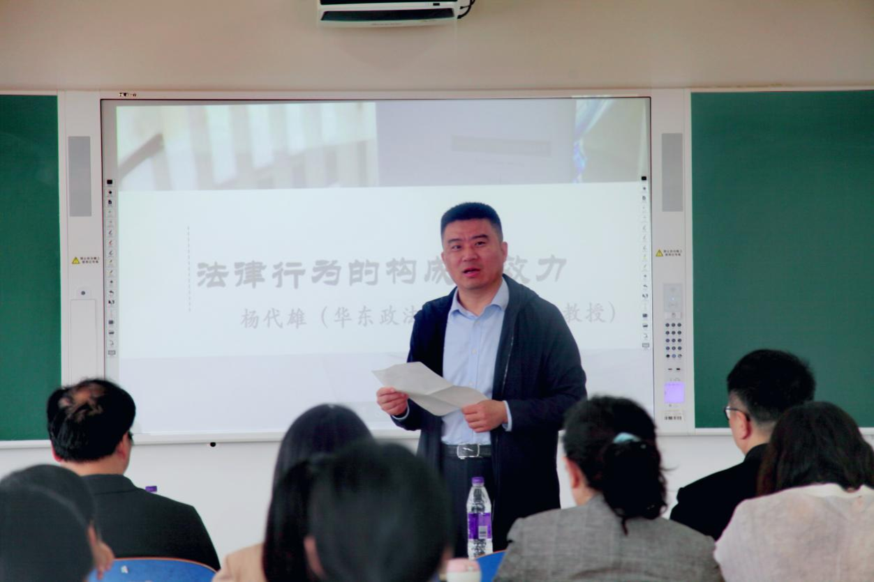2025年5月21日,应炸金花在线邀请,华东政法大学法律学院教授、博士生导师杨代雄教授为炸金花在线师生作题为“法律行为的构成与效力”的学术讲座。本次讲座由炸金花在线 院长陈光教授主持,法学一级学科带头人丁慧教授、副院长刘耀东以及武胜男老师、赵昭老师、部分研究生、本科生等师生参加了此次报告会。