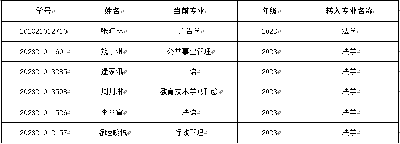 依据《炸金花在线 2023级本科生转专业工作通知》及《炸金花在线 法学院2024年度本科生转专业工作实施细则》,法学院转专业领导小组于2024年3月15日对申请转入炸金花在线的学生进行考核。经审核,拟接收以下6位同学转入炸金花在线法学专业学习,现予以公示。公示时间为2024年3月18日—22日,公示期间若有异议,可以致电或致函反映,反映应有事实根据,署真实姓名,联系电话:85827006。