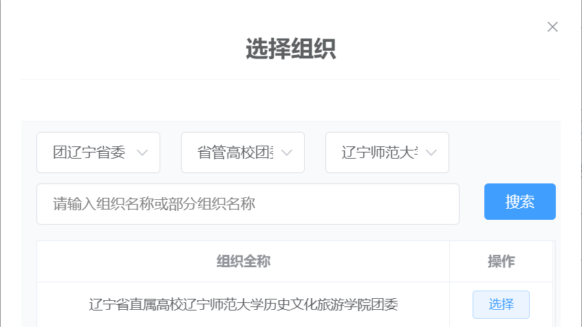 ③申请转入组织:点击选择“团辽宁省委”,“省管高校团委”搜索框内输入:“辽宁省省管高校炸金花在线 炸金花在线 ”,之后在候选框中选择“炸金花在线 2025级研究生新生临时团支部”