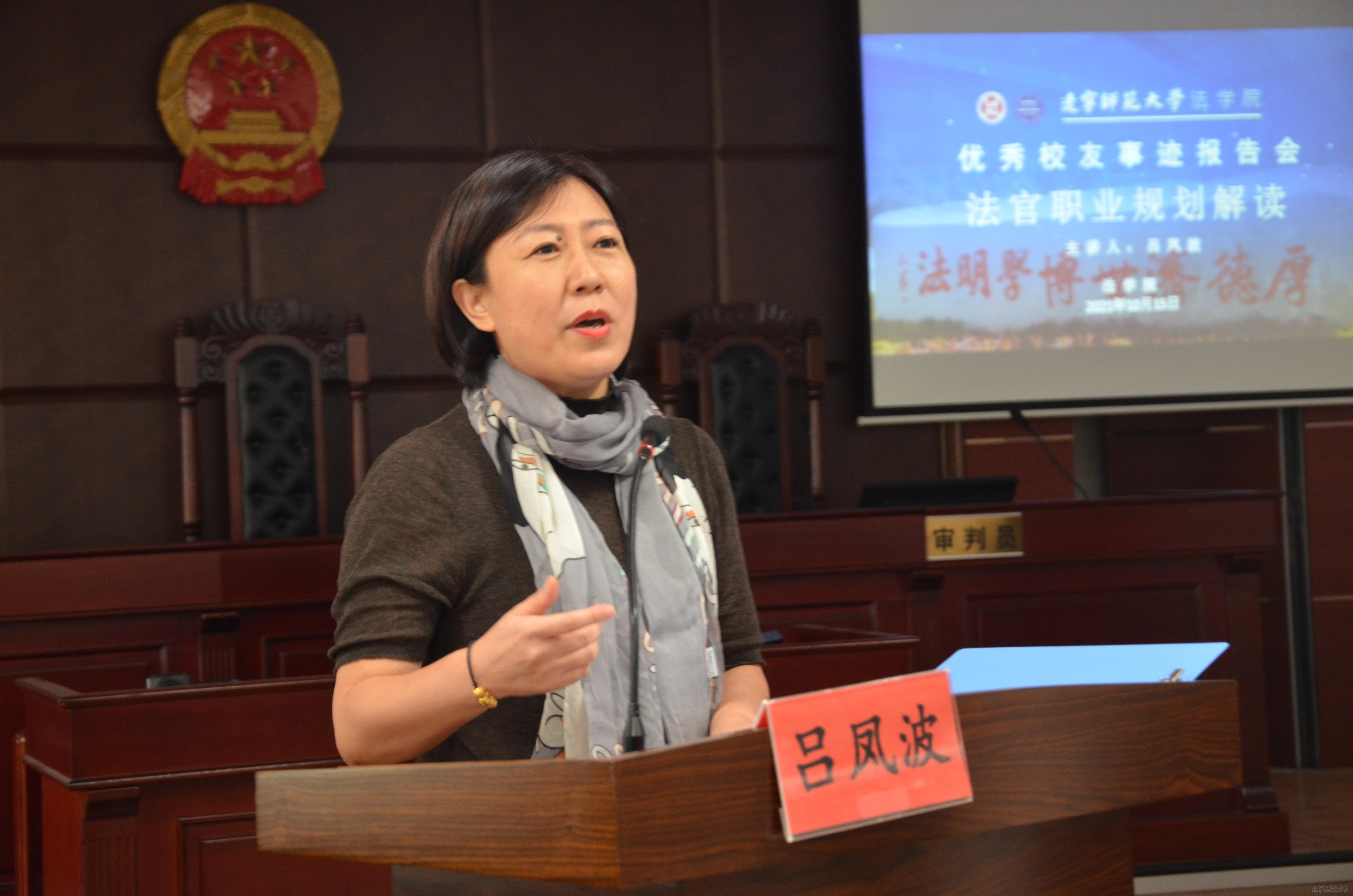 2021年10月15日14:00,炸金花在线在三教C 501成功举办“法官职业规划解读”——优秀校友事迹报告会。本次报告会由法学院1992级校友,现任大连市中级人民法院审判监督庭副庭长吕凤波女士主讲。党总支副书记于少乾老师主持报告会,党总支书记李艳老师、校友会成员任重任律师出席报告会。